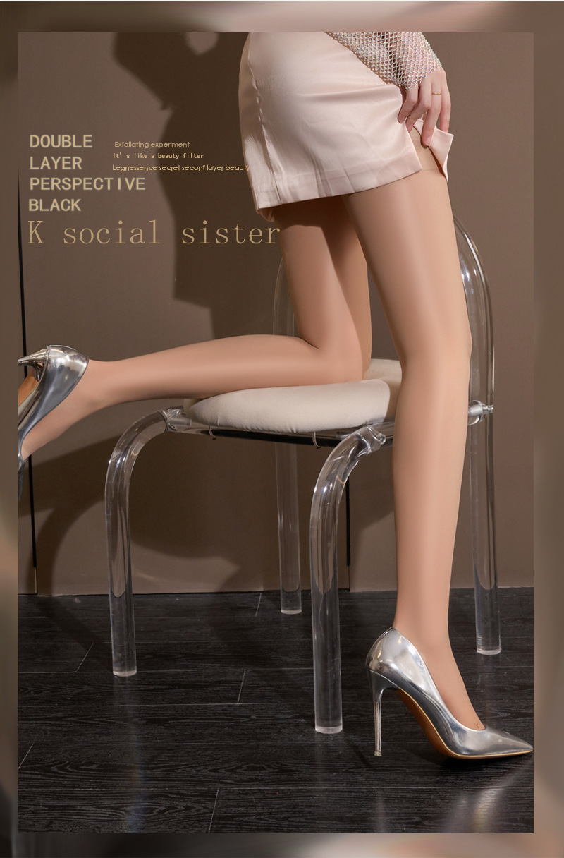 360無縫襠防勾絲高腰收腹油亮極光絲襪-膚色