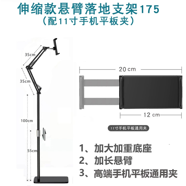 手機落地支架-黑色伸縮款+手機平板夾