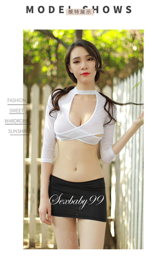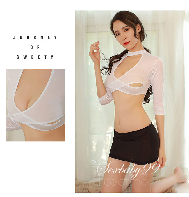 火辣金祕書-性感包臀角色扮演秘書服+內褲-白黑-M