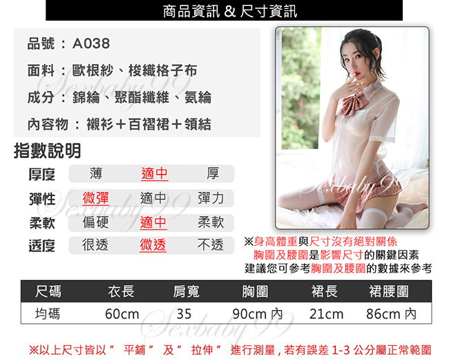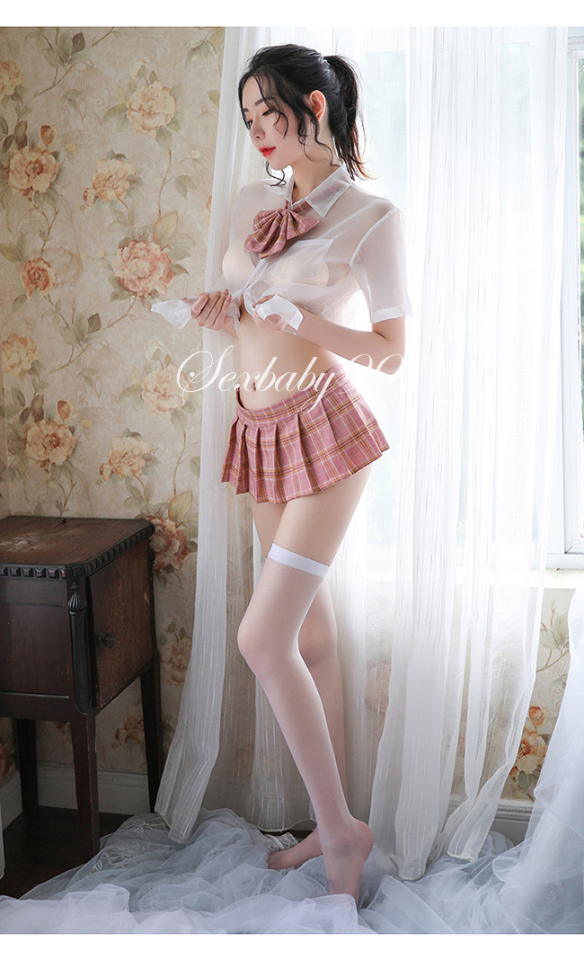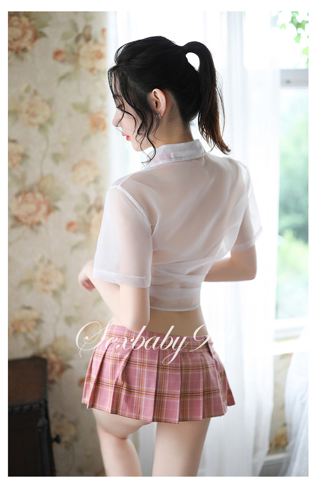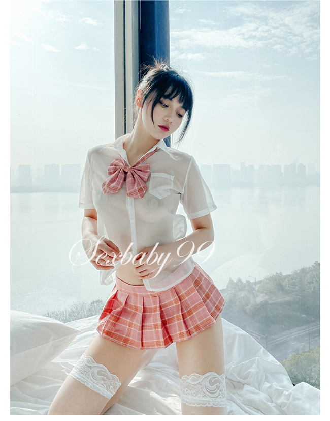 萌動青春-性感透視誘惑英倫風學生角色服-粉格