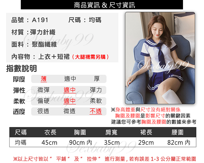 青澀懵懂-二件式性感學生服-深藍色