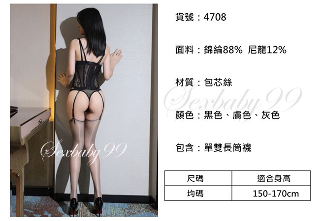完美貼合-超薄油亮素面長筒襪 吊帶襪-膚色