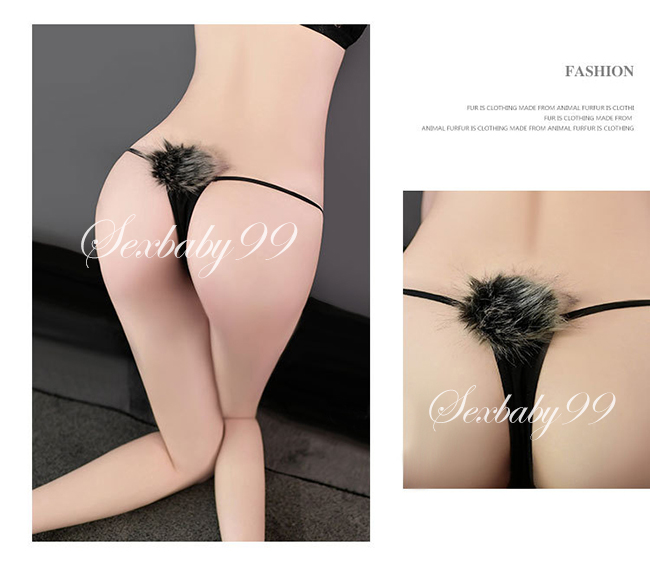 誘惑風情-性感兔尾巴毛絨T襠內褲-黑色