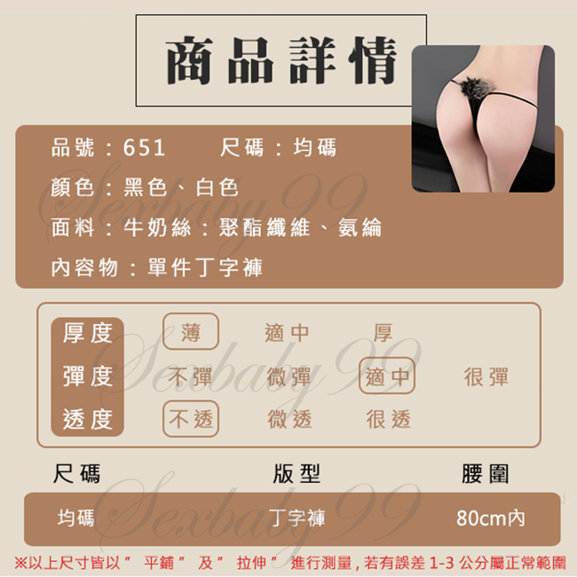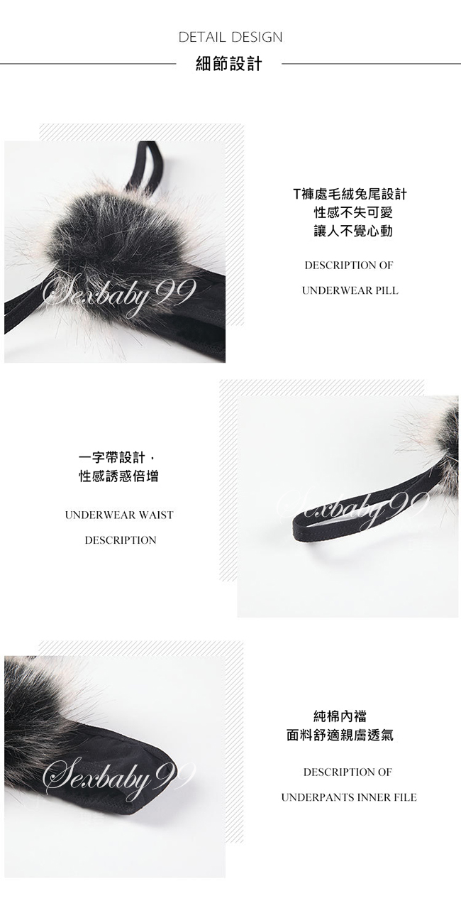 誘惑風情-性感兔尾巴毛絨T襠內褲-白色