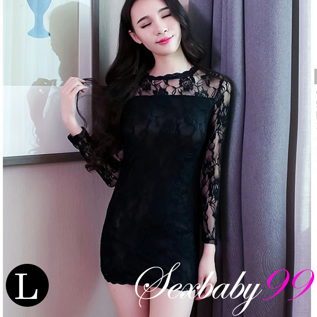 勾人妖精-性感透視蕾絲緊身包臀旗袍-L