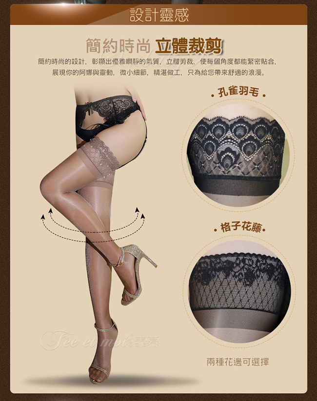 超性感透明油光長筒襪性感吊帶絲襪-膚