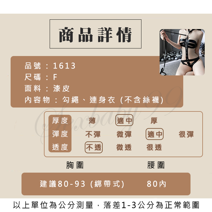 狂野之夜漆皮三點式情趣拉繩連身衣