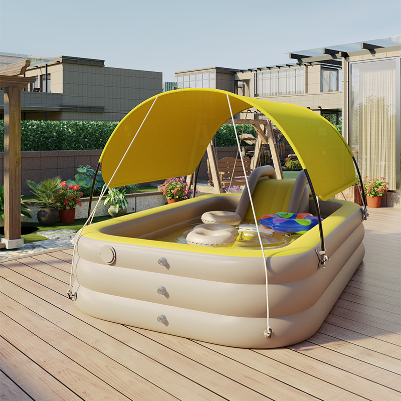 摩卡黃2.1米3層加厚親子遮陽充氣泳池