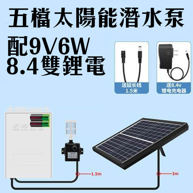 五檔太陽能水泵-9V6W+8.4V雙鋰電