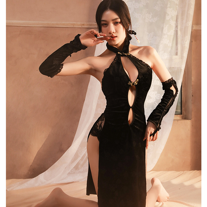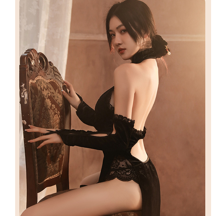 嬌嬈韻味 復古印花裸背開衩性感旗袍 角色扮演服