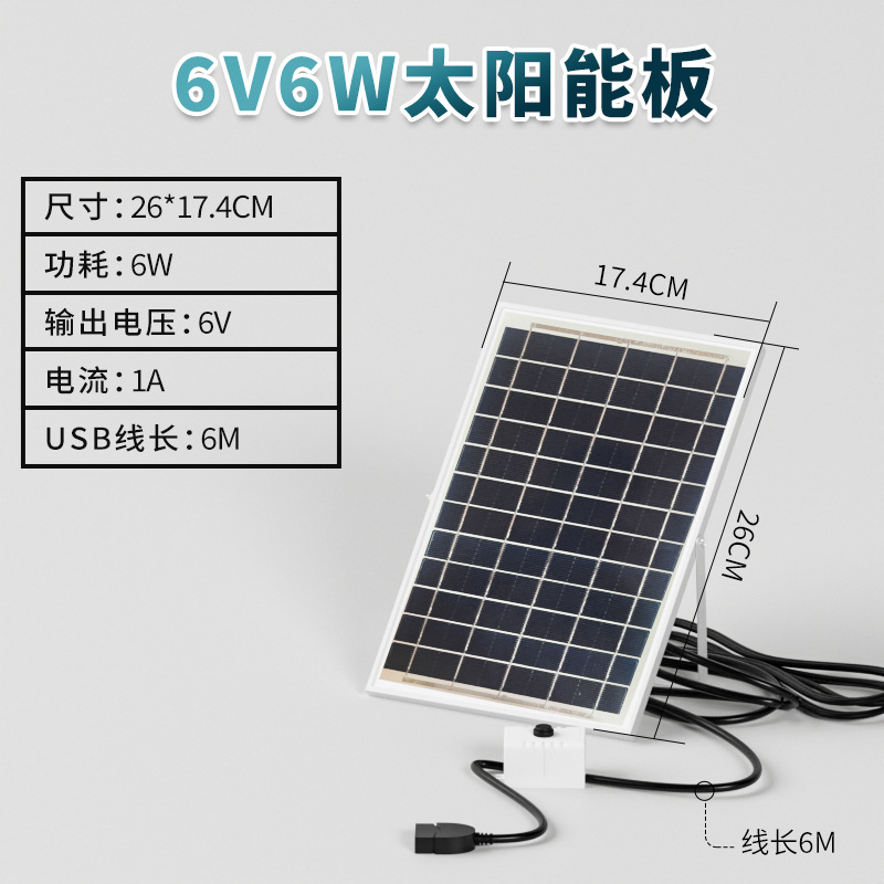 6V6W太陽能板+開關(USB線6公尺)