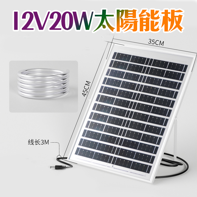 12V20W單晶太陽能板 工作電壓:12V 開路電壓:14.4A 短路電流:1.83A DC電線:3米
