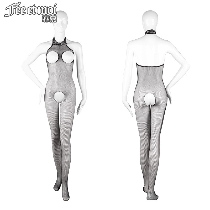 戀戀情懷-蕾絲露乳免脫開檔連身貓裝