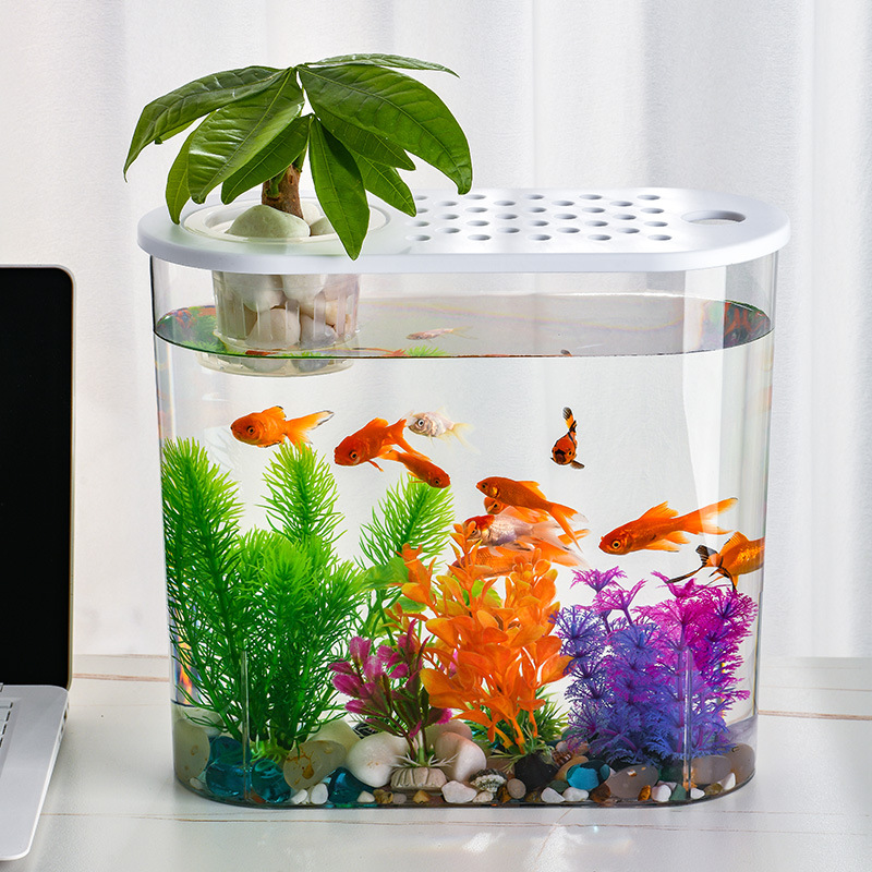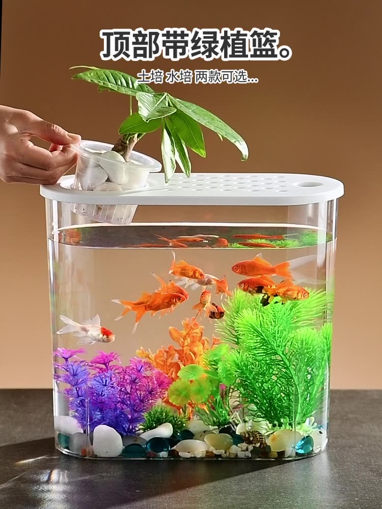 透明塑料水培白蓋魚缸-加高款