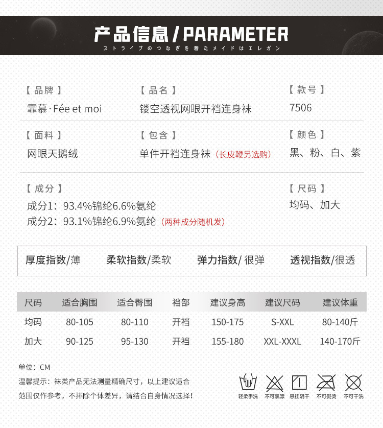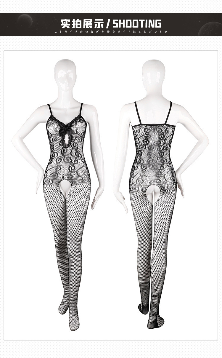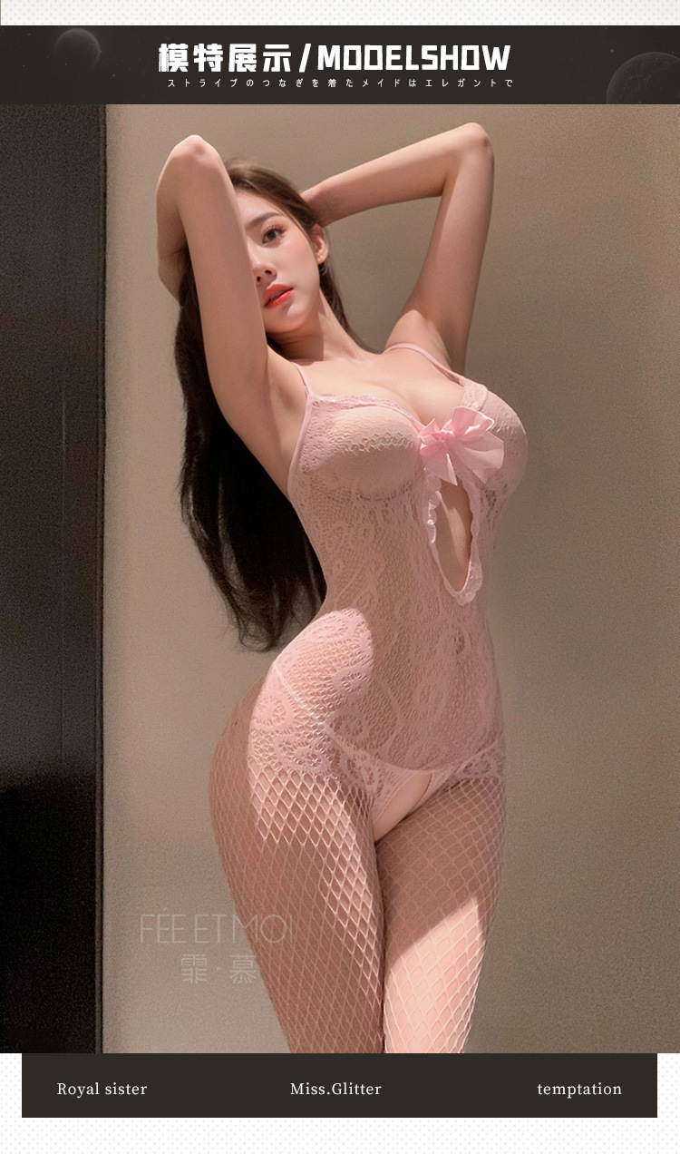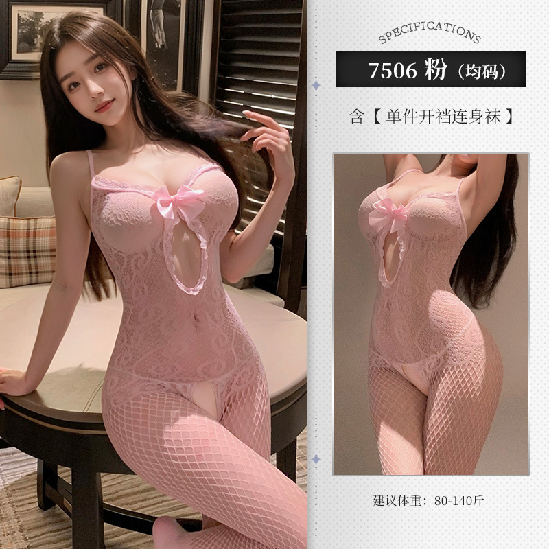 鏤空透視網眼開襠連身襪-粉色