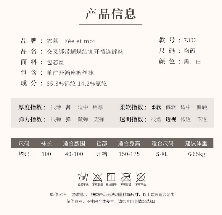 交叉綁帶蝴蝶結免脫開襠褲襪-黑色