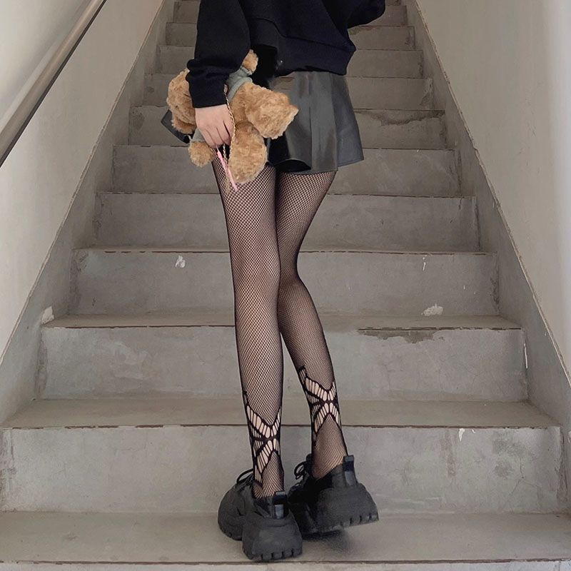 暗黑哥德蜘蛛鏤空漁網襪-黑色