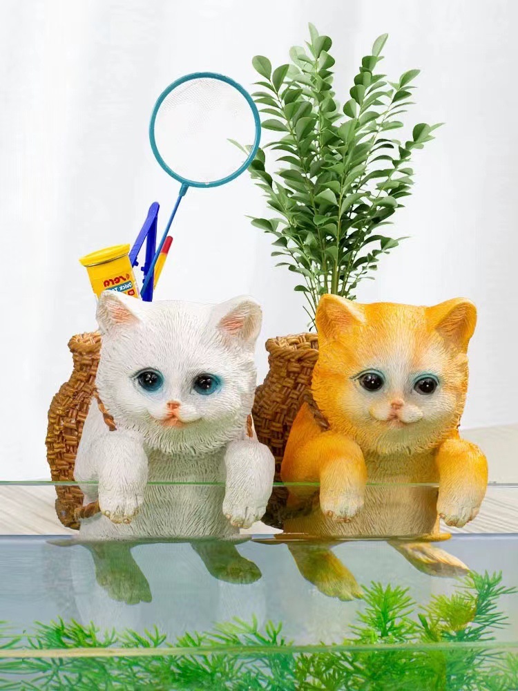 魚缸裝飾配件-白貓