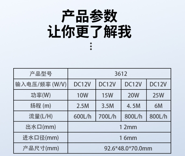 DC12V直流無刷水泵-15W-700L/H