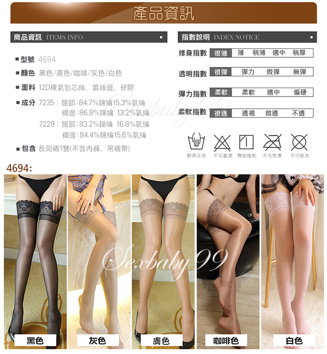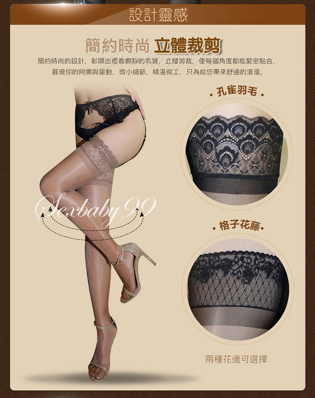 超性感透明油光長筒襪性感吊帶絲襪-黑