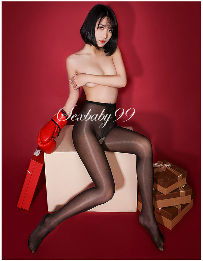 性感誘惑T字全透明閃光前後開檔絲襪 褲襪-黑