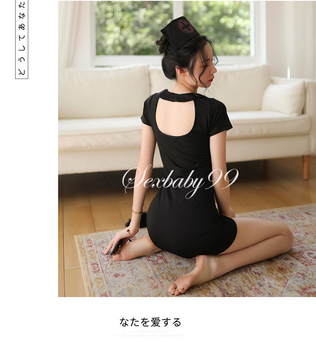 愛的照護-性感低胸包臀三件式護士角色服-黑色