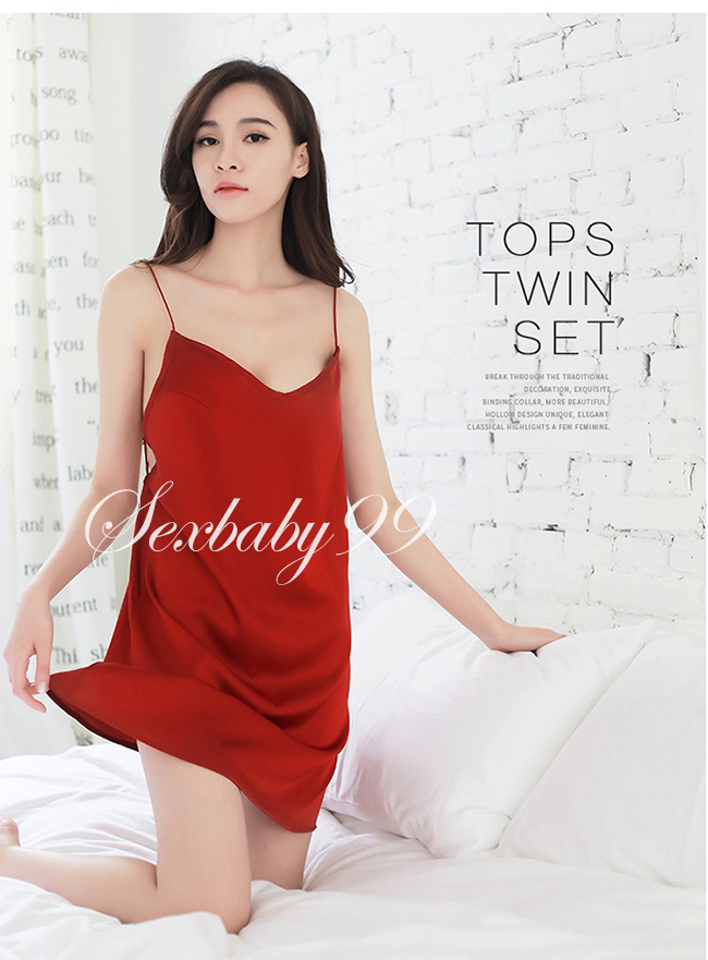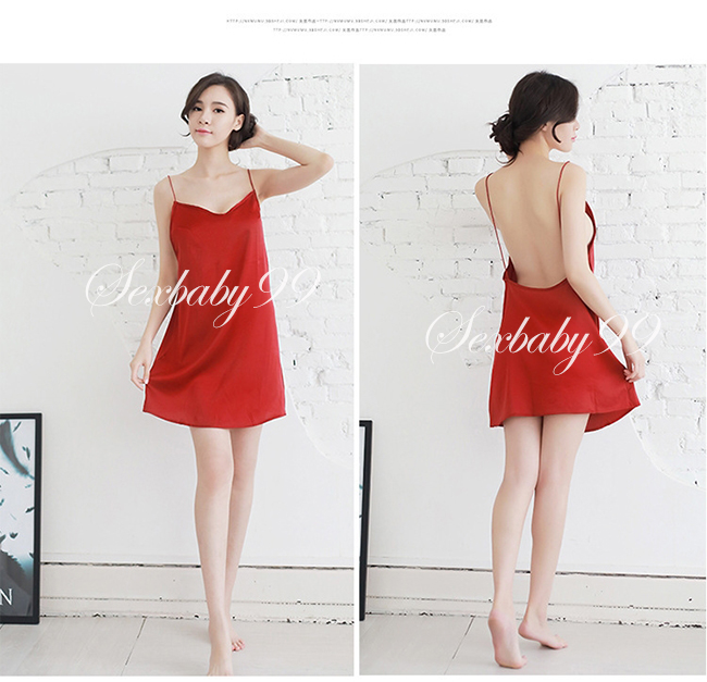 撩撥情愫-性感美背吊帶睡裙-酒紅色
